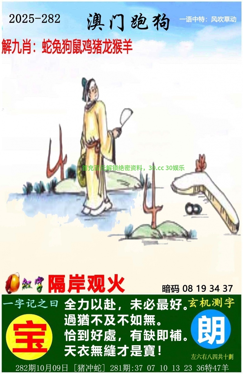 281期:【跑狗特码诗】开羊47 玄机诗云塘邊閒雀,一同贈慶,求知八卦是天性;知得太多,未必高興,適時扮蠢是聰明。 诗句解图中是一个女人正在院子里跳舞,解女肖蛇羊兔鸡猪,火烧眉毛,解火肖蛇马 单双:单数 |